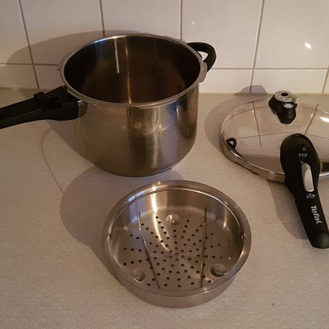 Tryckkokare kastrull i rostfrittstål 18/10, extra gummiring och rengörings nyckel ingår. Mkt fin skick, dock ej för induktion spis