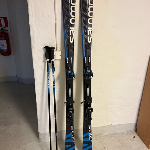 Skidorna har använts sparsamt och är i gott bruksskick likaså pjäxorna storlek 27,5 (motsvarar 43, jag har storlek 41 och har kunnat åka i dom)