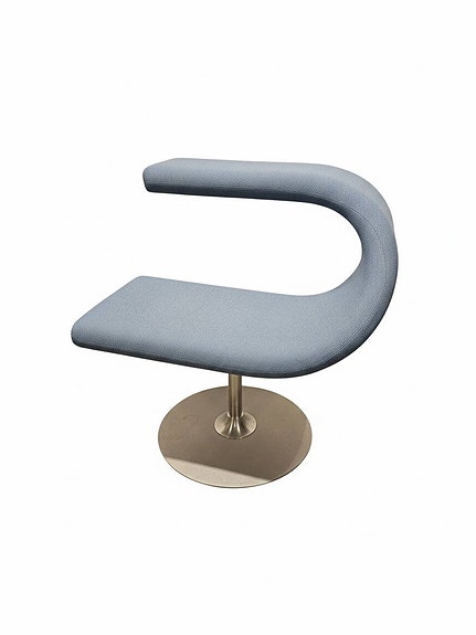 Innovation C är en ikonisk och multifunktionell snurrfåtölj från Blå Station, designad av Fredrik Mattson. Fåtöljen har ingen definierad fram- eller baksida, och det unika C-formade ryggstödet kan även användas som ett litet avlastningsbord för en laptop eller surfplatta. Klädd i ett slitstarkt blått tyg med ett underrede i stål, passar den utmärkt i kreativa mötesplatser, lounger eller väntrum.