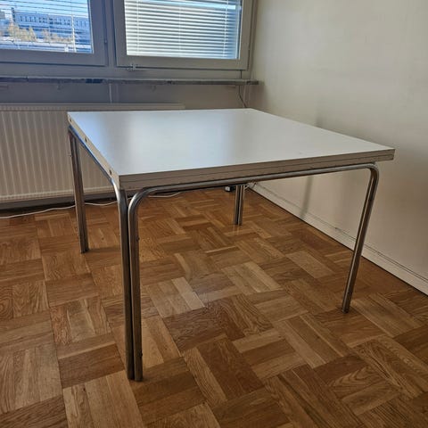 IKEA-bord som kan fällas ut på vardera sida. Längd 106/138/173 cm, höjd 73 cm och bredd 80 cm. Stabilt och i fint skick, dock enstaka fläckar på ovansidan (se bilder). Säljes pga flytt!