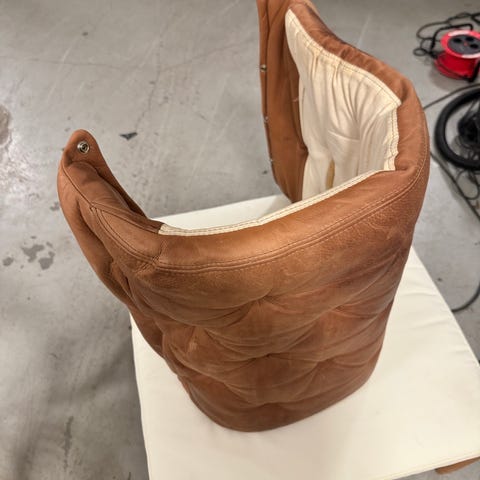 Säljer en ikonisk Pernilla 2 fåtölj med tillhörande fotpall, formgiven av Bruno Mathsson.