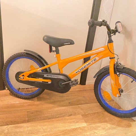 Cykel är använd bara några gånger. Jätte fin. Medföljer oanvända stöd hjul