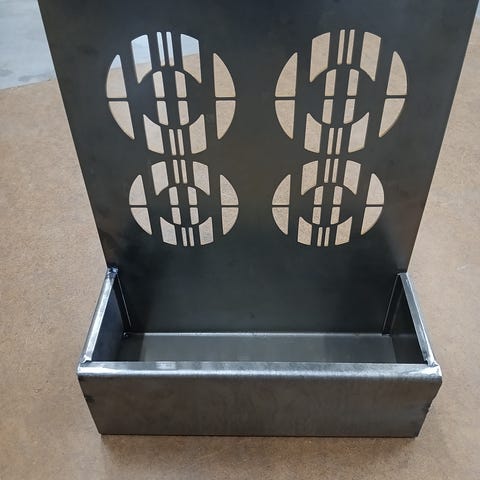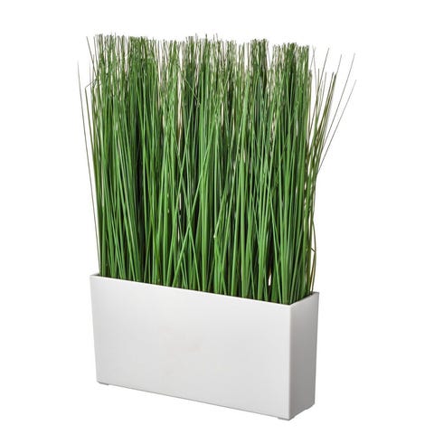 Höga blomlådor i plast samt spaljé i svart metall. Stödet består av en rektangulär ram med horisontella trådar som ger stöd åt klätterväxter. Ger växterna möjlighet att växa på höjden och hjälper till att hålla stjälkar och grenar på plats.