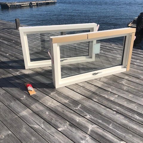 Modernt fönster från Ekstrands säljes. Har suttit i norrläge (mkt gott skick) och är av vridtyp, dvs öppnas utåt och kan snurras runt. Snyggt spröjs mellan fönstren (2-glas).