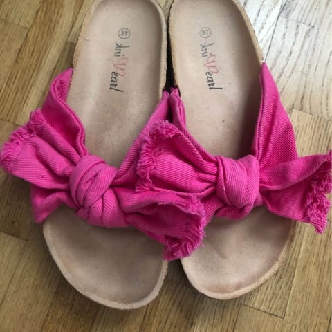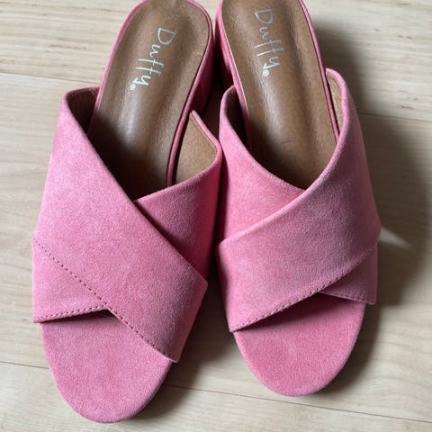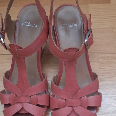 Gant sandaler i storlek 39. Öppen modell med bred rem över foten i röd mocka. Mellansula med flätad jutedetalj och yttersula i gummi med räfflad undersida. Passar som sommarskor eller inneskor.