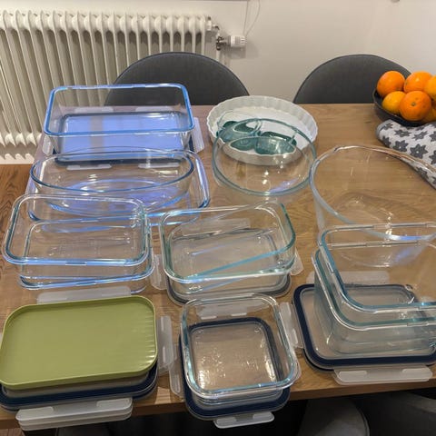 IKEA GLADELIG Servis porslin blåbrun tallrikar skålar muggar