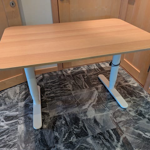 Skrivbord höj- och sänkbart ljus träskiva metallben