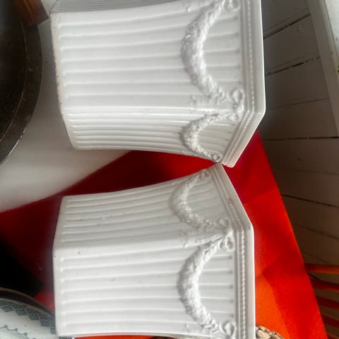Gustavsberg Grazia vaser i keramik. Vaserna är vita med svart blomstermönster runt om. Märkta "Gustavsberg Grazia Made in Sweden" i botten med modellnummer 219 och 217. Höjd 39 cm respektive 22 cm. De är hela och felfria men finns lite bruna ”åldersfläckar”. (Kan finnas medel att ta bort dom med enligt tips) Stor vas 400 kr och liten vas 300 kr. Båda för 600 kr.