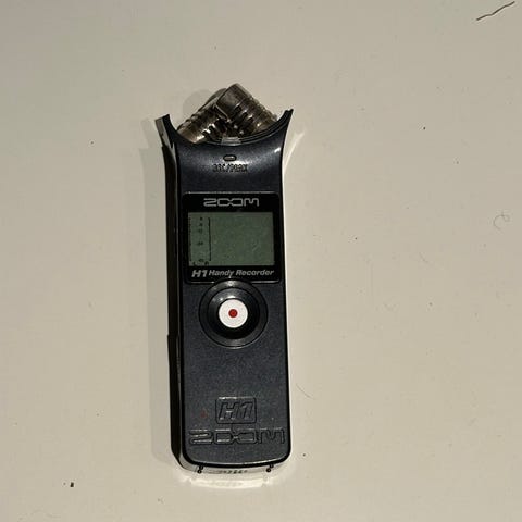 Zoom H4n Pro portabel ljudinspelare i svart utförande. Modellen har inbyggda riktade stereomikrofoner upptill samt två kombinerade XLR/TRS-ingångar för anslutning av externa mikrofoner eller linjesignaler. På framsidan finns display och knappar för inspelning, uppspelning och spårval. Inspelaren drivs vanligtvis med batterier eller nätadapter (ej bekräftat vad som ingår). Passar för fältinspelning, intervjuer, musik- och ljudinspelning där en kompakt, fristående inspelningsenhet behövs.
