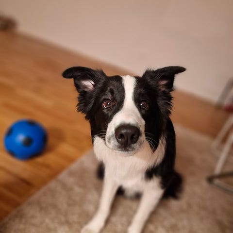 Han är väldigt lydig och kan gå lös i skogen, visar inga vallningsegenskaper och har aldrig vallat.