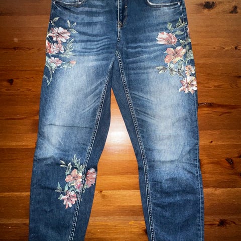 Mango jeans, isblå, storleken är 40, i bra skick, kommer från djur och rökfritt hem, finns i Nacka, kan skickas mot fraktkostnaden.