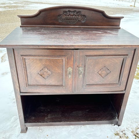 Vackert äldre skåp i massivt trä med snidade detaljer