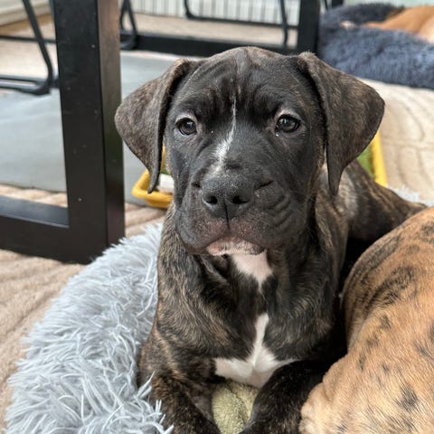 Vi letar efter ett tryggt och kärleksfullt hem till vår fina blandrashund, en korsning mellan Bullmastiff och Engelsk bulldogg. Han är nästan 1,5 år gammal.Chipmärkt, vaccinerad regelbundet och avmaskad.