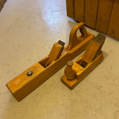 Snickarbänk i trä med kraftig arbetsyta och inbyggda träskruvtvingar på kortsidorna. Bänken har hål för bänkhakar och stabilt underrede i trä. Lämplig som arbetsbänk för snickeri, hobbyarbete eller verkstad.