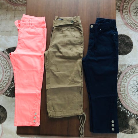 H&M capribyxor för dam, i bra skick, storleken är 36, kommer från djur och rökfritt hem, finns i Nacka, kan skickas mot fraktkostnaden.