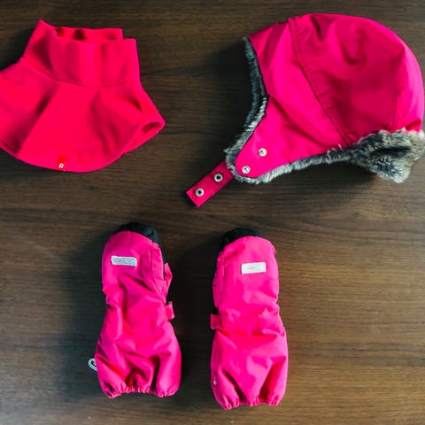 Reima halsduk, vantar och mössa, säljes tillsammans, storlek för vantar är 4, mössa 52cm och halsduk one-size, halsduk och mössa är i bra skick, vantarna behöver koll genom att sy på några fingertoppar eller använda sådär, kommer från djur och rökfritt hem, finns i Nacka, kan skickas mot fraktkostnaden.
