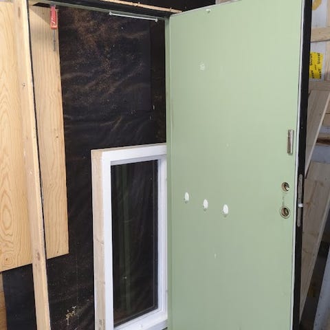 Perfekt som byggdörr eller förrådsdörr. Se bild för skick.