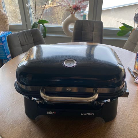 Outdoorchef P-420G gasolgrill i svart utförande. Rund grill med lock och inbyggd termometer på ovansidan. Utrustad med reglage för värmekontroll och piezotändning på fronten (funkar ej men går att tända manuellt). Grillgaller i metall med cirkulär insats. Ansluts till gasol via slang framtill. Passar för utomhusbruk, exempelvis på altan, balkong eller i trädgård.