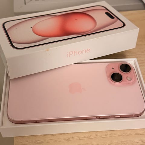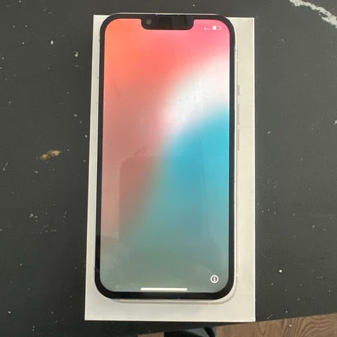 Apple iPhone 13 smartphone med 128 GB intern lagring. Modellen har dubbla bakre kameror, platt skärm och kantig ramdesign. Färg: rosa. Levereras med originalkartong och USB‑C till Lightning‑kabel enligt bilderna. Passar för vardaglig användning som samtal, meddelanden, surf, appar, foto och video. Batteri kapacitet 75 procent. Små synliga repor på kanterna (precis som på bilderna). Skärmen och baksidan utan skador. Skärmen haft skydd hela tiden. Den är fortfarande på.