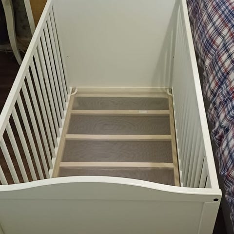 IKEA spjälsäng i trä i naturfärg. Klassisk modell med ribbor runtom och öppen ovansida. Passar för spädbarn och småbarn. Sängen kan kombineras med madrass, sängkläder och sänghimmel efter behov. Lämplig för användning i barnrum som första säng.