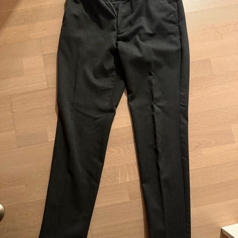 Snygga svarta MNG kostymbyxor med klassiskt pressveck och hällor för skärp. Byxorna har snedställda fickor fram och passpoalfickor bak. Rak passform och stängs med knapp och dragkedja. Perfekta för en stilren look.nypris har kostat 800kr