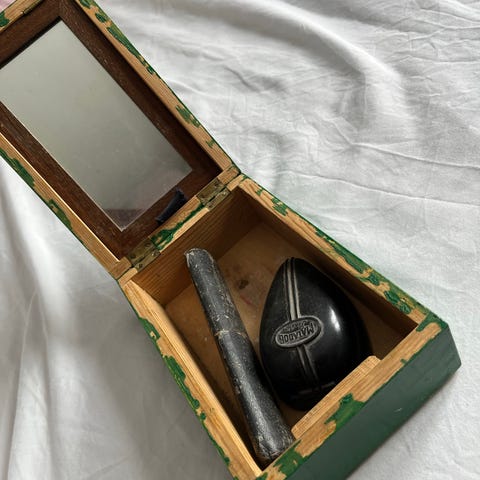 Klas Törnblom rakkniv med svart handtag och tillhörande etui. Rakkniven är fällbar med metallblad och handtag i mörk plast eller liknande material. Levereras i originalask med text från tillverkaren. Passar för traditionell rakning eller som samlarobjekt och inredningsdetalj.