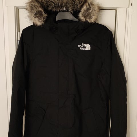 Jag har för många vinterjackor och säljer North Face dunjacka vinterjacka för herr i storlek XXL. Jackan är blå och fylld med dun. Modellen har huva med fuskpäls, hög krage och hel dragkedja framtill med vindslå. Flera ytterfickor framtill, värmefickor och innerficka för förvaring. Ärmslut med justerbar öppning. Passar som varm vinterjacka för kallare väder. Kemtvättad varje vår.
