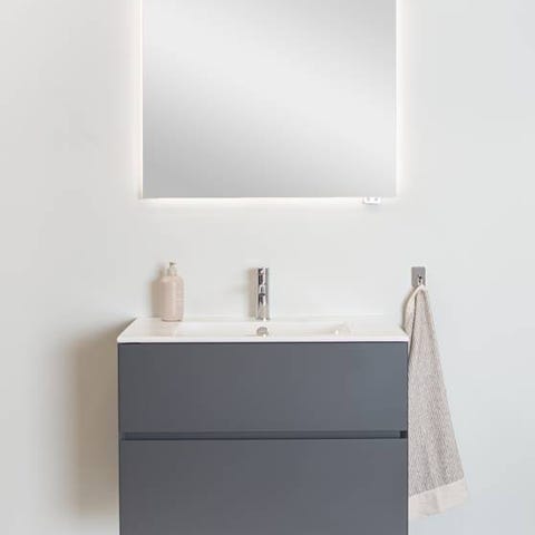 Badrumsmöbel från Macro Design, Crown kommod ljus ek med en massiv lådfront Grip. Levereras med ett exklusivt porslin L14.