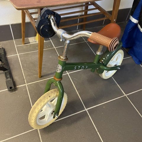 Balanscykel Micky och Mia Red polka till barn 3-4år storbild 37-44cm styre 50-59