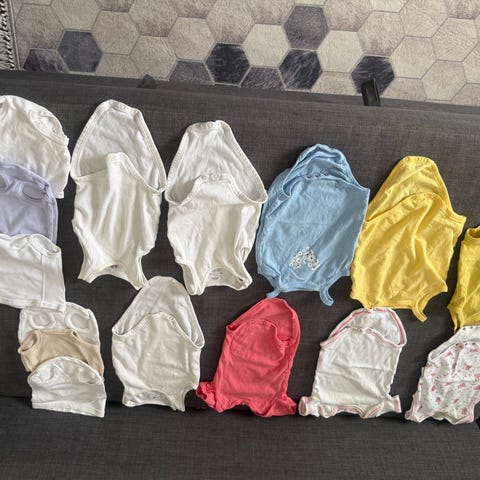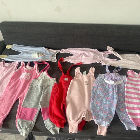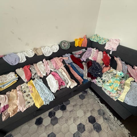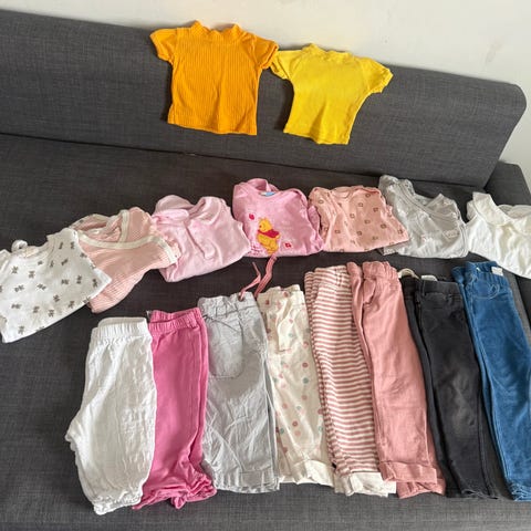 H&M babykläder för flicka i storlek från 50.till 62/68Flerfärgat med flera plagg i olika mönster och färger, bland annat gula, rosa och mönstrade delar. Passar nyfödd eller liten bebis, lämpliga som vardagskläder eller underplagg.