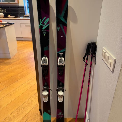 Säljer ett par alpinskidor K2 Luv Bug 156 cm, inklusive stavar.