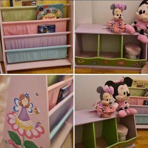 Barnsoffa i modell kökssoffa i miniatyr, med bra förvaring för tex leksaker under locket. Gråmålad furu. Dekoren/Dekalerna är tapetdekaler (inte klistermärken!), så lätta att ta bort om man vill. Längd ca 74 cm inklusive armstöd, djup ca 30 cm, högsta höjd ryggkrön ca 59 cm, sitthöjd ca 30 cm, sittbredd ca 65 cm(lock). I bra skick, då den den använts sporadiskt av våra barnbarn vid besök hos oss, men självklart lite spår av användning (studera bilderna). På baksidan finns ett skrapmärke (se sista bild), du lätt kan måla över, om den ej ska stå mot vägg. Perfekt för barnrum eller lekstuga. Kan ev. levereras till adress i Eskilstuna enligt ök.