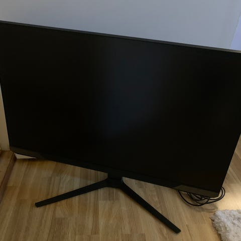 MSI bildskärm med 27 tum skärmstorlek i svart utförande. Passar för användning med stationär dator, till exempel för arbete, studier eller vardagligt bruk. Skärmen står på ett stativ med två ben framtill. Övriga tekniska specifikationer framgår inte av underlaget.
