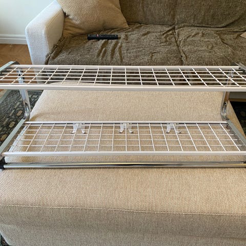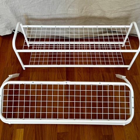 En hatthylla och skoställ samt vägg hyllkonsoler från Maze