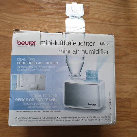 Säljer en Beurer luftfuktare i fint skick. Perfekt för torra inomhusmiljöer, särskilt under vinterhalvåret när luften blir torr. Hjälper till att förbättra luftfuktigheten hemma och kan göra luften behagligare för hud, hals och sömn.