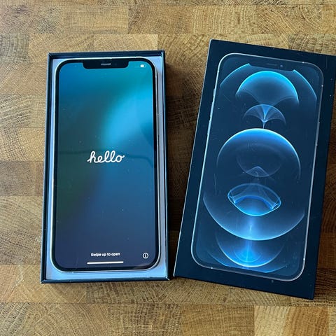 Säljer denna fina IPhone 12 Pro Max med 128 gb minne, 84% Batteri . Alltid använt skärmskydd ( skärmskydd på ) Allt Original