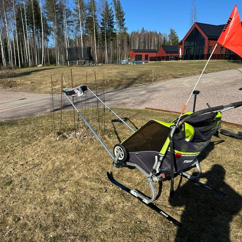 En spricka i vindrutan på sidan som inte påverkar funktionen. I övrigt väldigt lite använd. Vi har kunnat ha två mindre barn i pulkan.