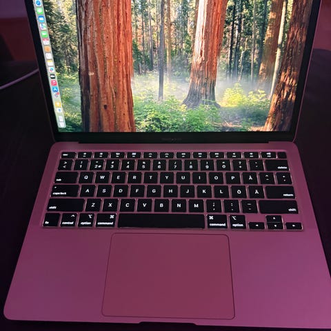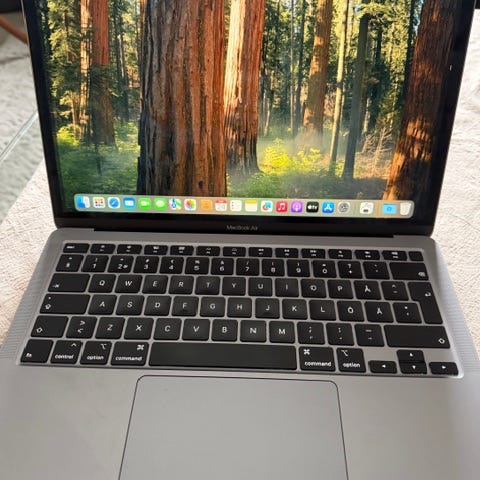 Säljer nu min fina MacBook Air 13,3 tum då jag behövt uppgradera till en pro. Är i jättefint skick med batteritid på 94%. De enda små slitagen är de som syns på bilderna (hörnskador), annars som ny. Fullt fungerande och sparsamt använd (har haft plastskydd över och under datorn). Är väldigt tunn och väger lite, perfekt till studier eller när man enkelt behöver ta med sig datorn.