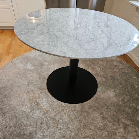 Säljer ett matbord från Mio med marmorskiva. Fint använt skick :) 105 cm i diameter