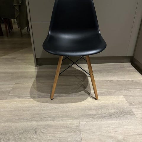 Några repor, en av stolar en sprucken i matellen undertill och en har en mindre spricka(se bilder). Går utmärkt att använda ändå, använder dagligen här hemma.