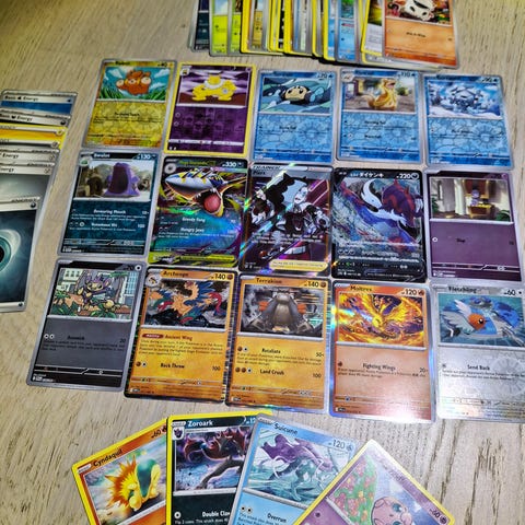 Pokémon samling spelkort. Blandade kort med olika Pokémon, typer och energikort. Passar för samling eller spel i Pokémon Trading Card Game. Antalet kort är 90 st av olika modeller och kort.