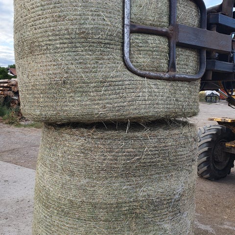 4 rundbalar på ca 220-250kg styck finnes då hästarna inte kommer hinna äta upp allt innan sommaren.