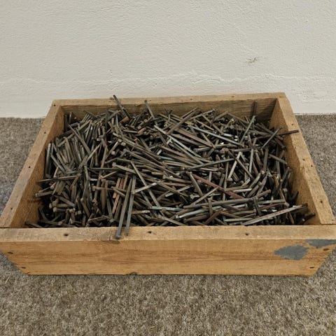 Har en nästan full låda med 5 tumsspik (125x4 mm), ca 200. "Spik blank" för byggnadskonstruktioner inomhus. Kvalitetsspik från Gunnebo.