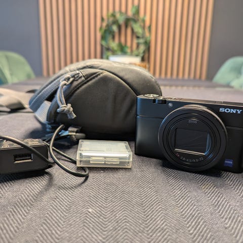 I fint skick, inkl 3x batteri, handlovsrem, laddare, Arca handgrepp, EV1 sökare samt lådor.