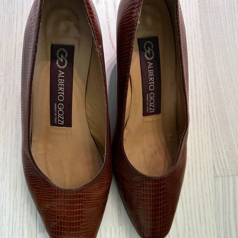 Valentino klackskor i storlek 39. Skorna är i brun mocka med kilklack och rundad tå. Diskret Valentino-logotyp framtill och på klacken. Ny yttersula i gummi för bättre grepp. Passar som klassiska damskor för vardag eller mer uppklädda tillfällen. Fin mocka, men en liten lagning med original tyg på höger insida vänster.