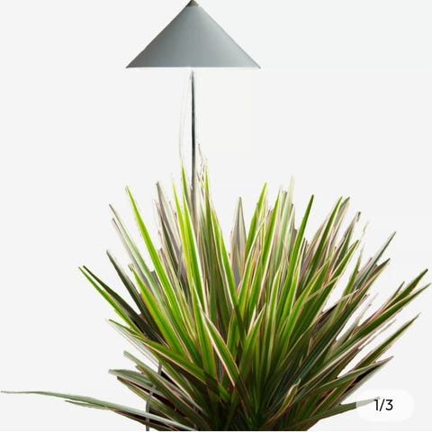 Örtkruka, 31 cm i diameter med växtbelysning som är höj-och sänkbar. Köpt på Blomsterlandet. Perfekt för att förlänga säsongen av färska örter eller till hemmaodling. Nypris ca 800:-