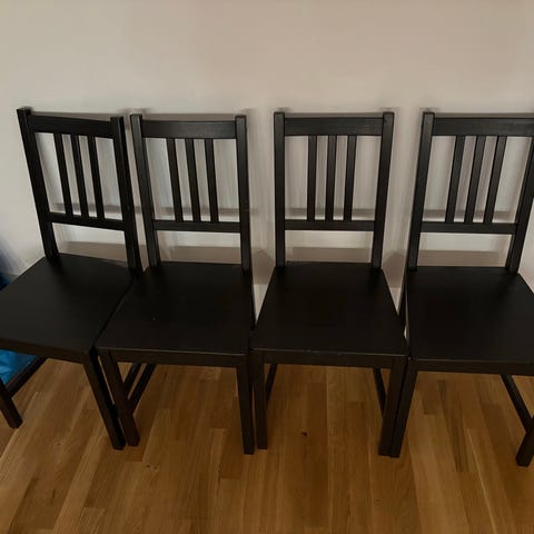 2 köksstolar med enklare dynor. Ett isärmonterat köksbord, liten storlek. En hallspegel. Allt i gott skick. Skänkes omgående.