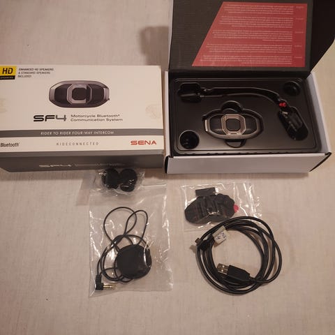 Snell E2 Bluetooth intercom i svart färg. Enheten är avsedd för montering på hjälm och används för trådlös kommunikation via Bluetooth. Förpackningen innehåller huvudenhet, högtalare, mikrofon, USB-kabel, fästen och bruksanvisning enligt specifikation på kartongen. Passar för användning vid motorcykel- eller skoterkörning där hjälmkommunikation önskas.