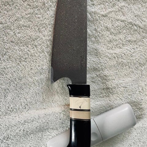 Handgjord kökskniv tillverkad i Sverige av Mikael Vallin.