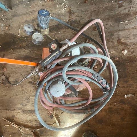 Oxygen tuben är tom och lite kvar i acetylen tuben